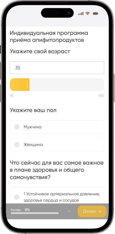 Ответьте на вопросы теста и система сама подберёт апифитопродукты под ваши задачи
