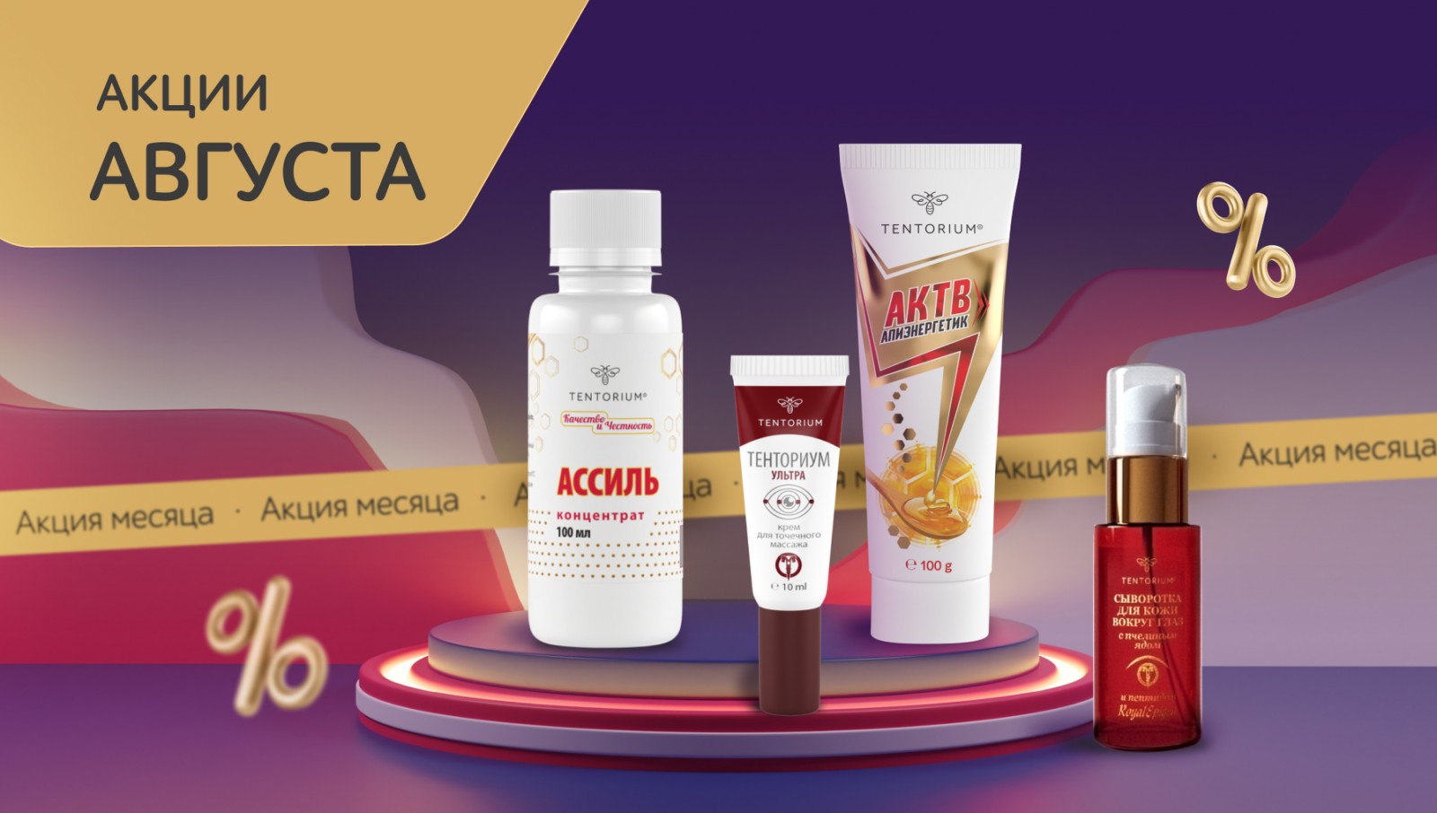 Чтобы золотая осень запомнилась долгими прогулками, а не простудами – берегите здоровье с продуктами «Тенториум». Весь октябрь скидка 15% на концентрат БАД «Прополис С immuno» и новинку этого года – апифитобальзам «Эй-Пи-Ви. 13. Лёгкое дыхание». Также действует скидка 10% на гель для интимной гигиены «Мускус Унисекс».