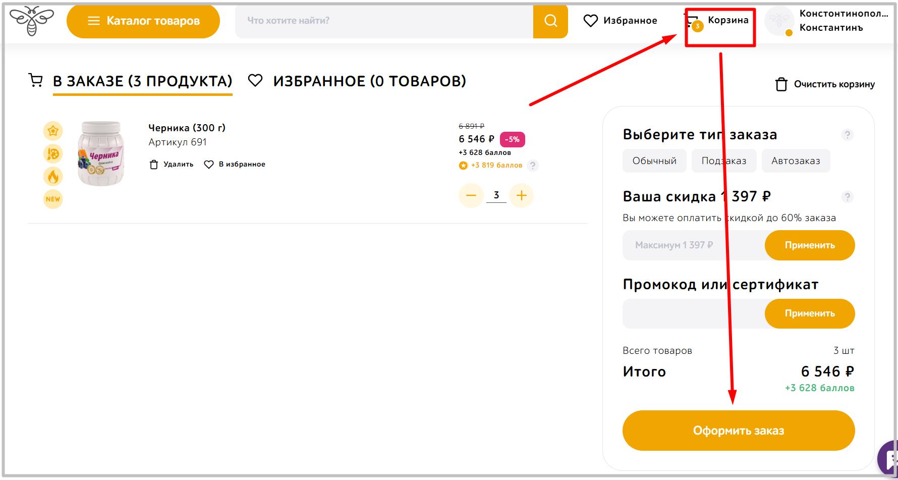 Шаг 1. Добавьте товары в корзину и перейдите к оформлению заказа.