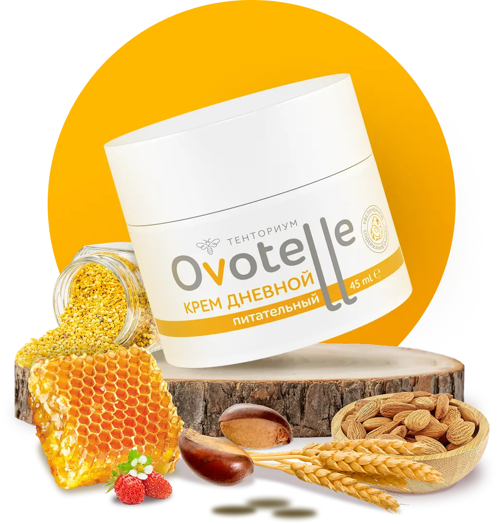 Крем глубокого действия, обогащённый природным компонентом Ovotelle, мёдом, экстрактом пыльцы и маслами.