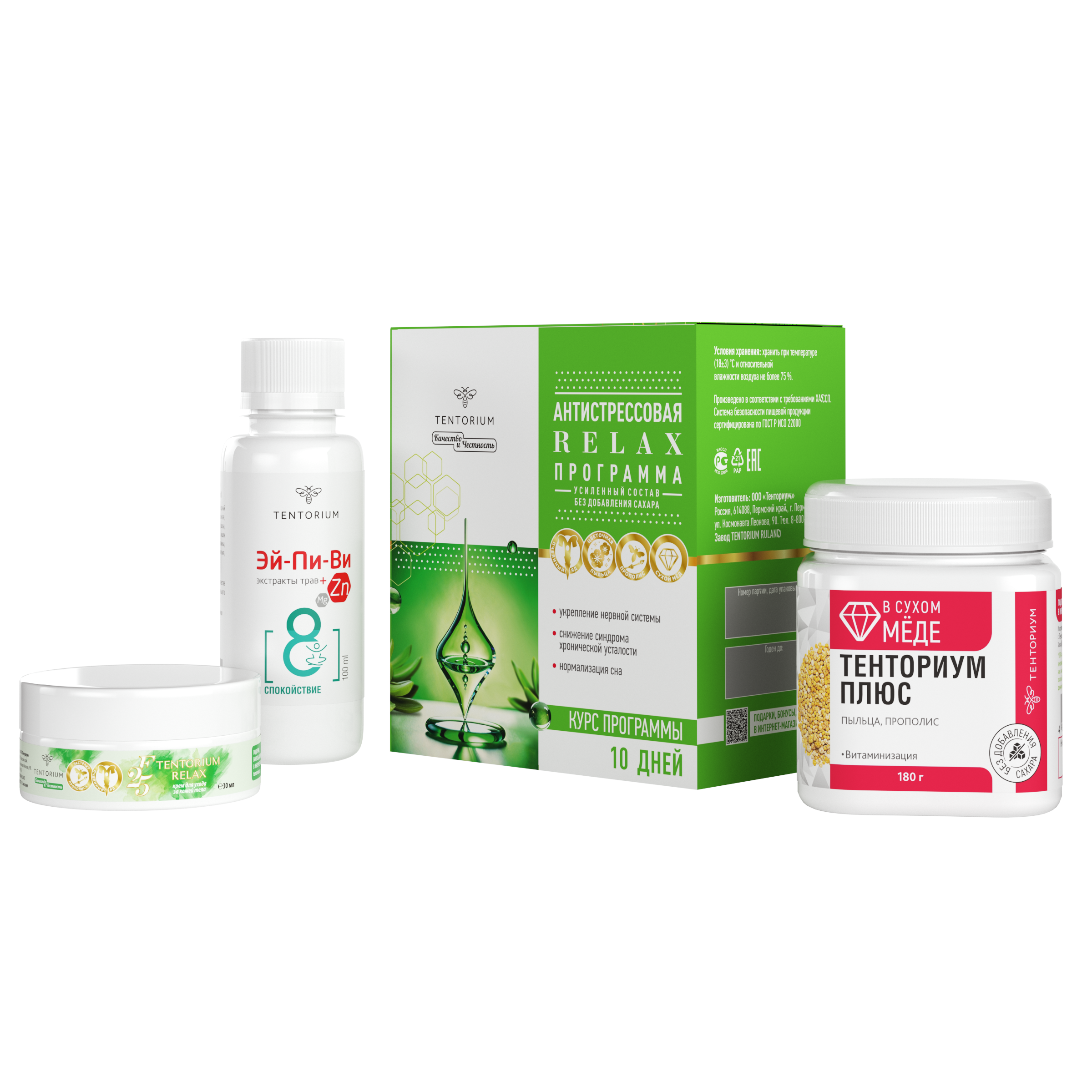 | Продукт | Апифитобальзам «Эй-Пи-Ви 8. Спокойствие» | Концентрированный пищевой продукт «Тенториум плюс на сухом мёде» | Апифитобальзам «Эй-Пи-Ви 8. Спокойствие» |