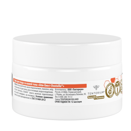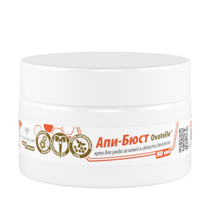 Натуральные компоненты крема «Апи-бюст Ovotelle» способствуют улучшению местного кровообращения, укрепляют ткани зоны декольте и груди, предотвращают риск возникновения стрий («растяжек») и воспалительных процессов молочных желез. Регулярное использование крема с применением техники самостоятельной диагностики груди помогает вовремя обнаружить нежелательные уплотнения. Повышенная эффективность достигается использованием в составе крема разработанного и запатентованного ТЕНТОРИУМ® ингредиента Ovotelle, который получен методом холодной экстракции желтка перепелиных яиц. Благодаря эффективному гипоаллергенному ингредиенту крем легко впитывается, глубоко проникает в слои эпидермиса, помогает бороться с признаками старения кожи.