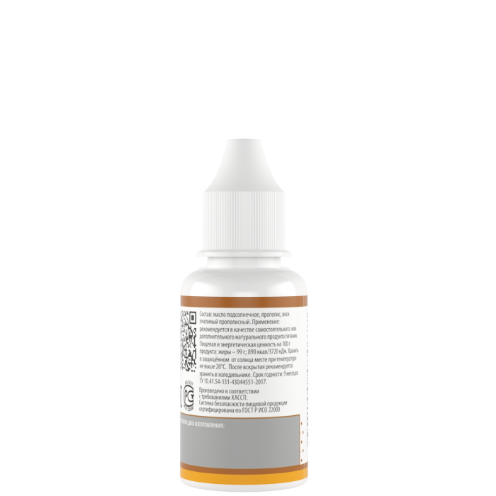 Данный продукт содержит густой экстракт прополиса, инновационный способ получения которого подтверждается патентом на изобретение.