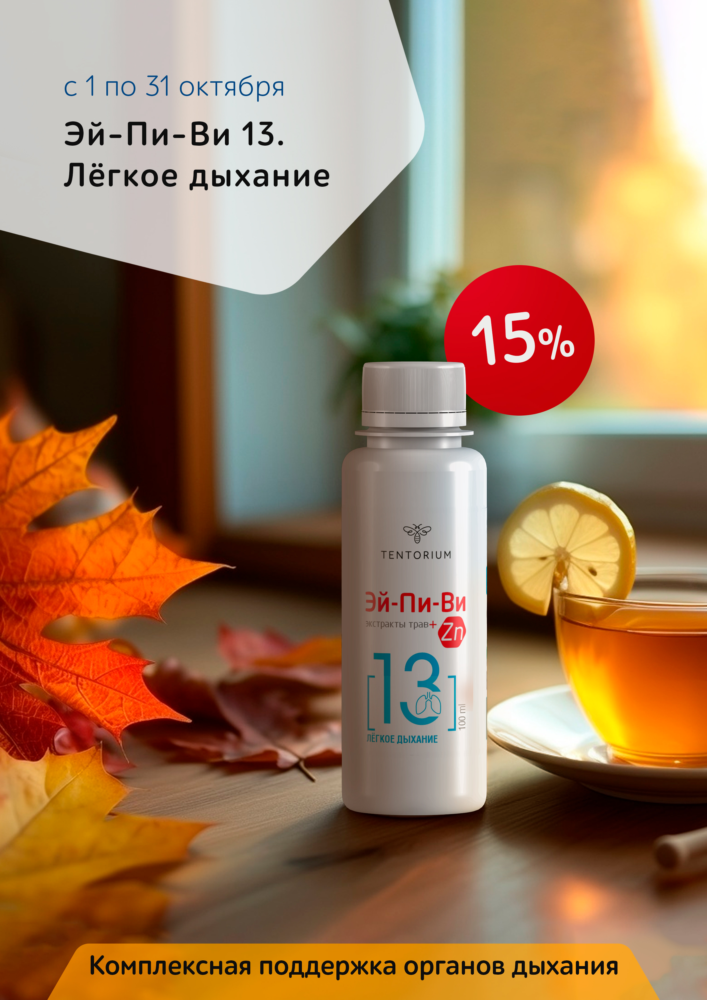 Активные компоненты Апифитобальзама Эй-пи-ви «13» Легкое дыхание помогут справиться в особо сложные периоды вирусных нагрузок на дыхательные пути человека: