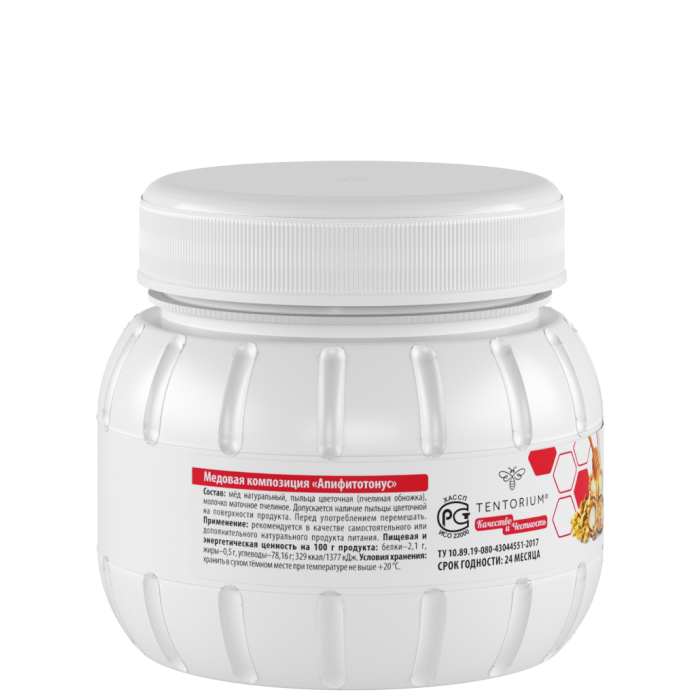 Входящие в состав комплекса "Апифитотонус" компоненты (цветочная пыльца, маточное молочко и мёд) активизируют защитные факторы организма при умственном и физическом переутомлении, в период эмоционального стресса, при работе в экстремальных условиях.