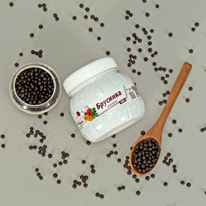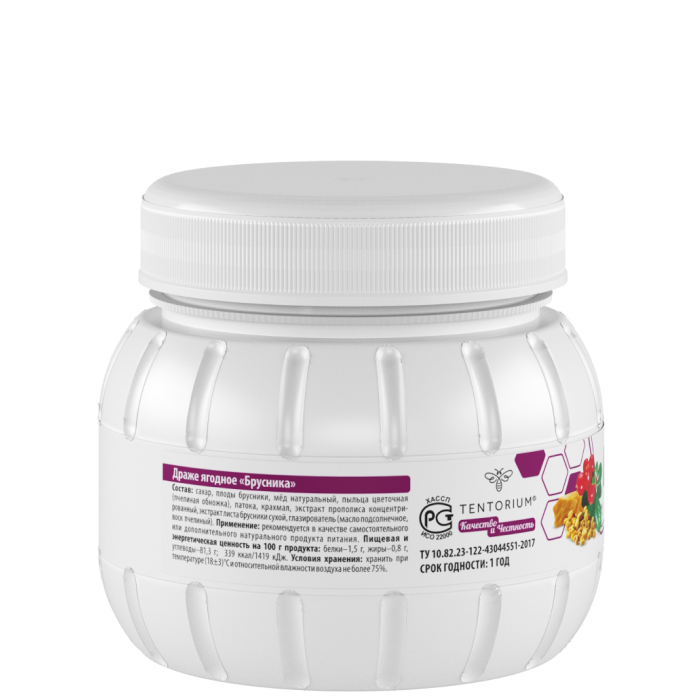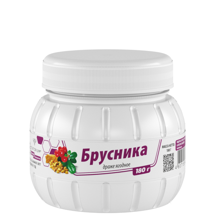 Вкусный и полезный продукт с природными активными компонентами, которые обладают многочисленными полезными свойствами. Брусника защищает клетки организма от разрушительного воздействия свободных радикалов и вредных бактерий. Эта целебная ягода в сочетании с прополисом, цветочной пыльцой и мёдом укрепляет иммунитет, в незначительной степени понижает артериальное давление, оказывает слабое успокаивающее действие, усиливает перистальтику кишечника, обладает жаропонижающим и мочегонным действиями. Комплекс компонентов в составе драже положительно влияет на иммунитет, подходит для взрослых и детей.