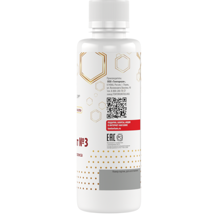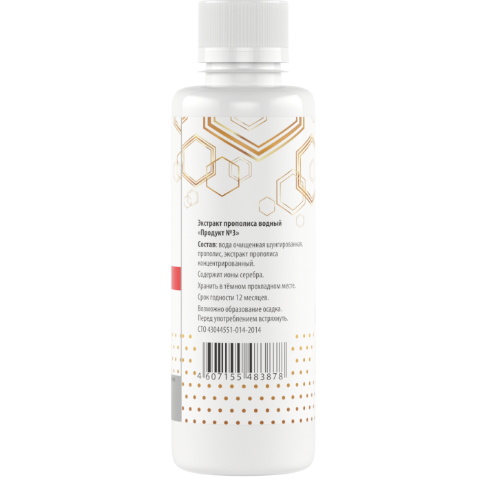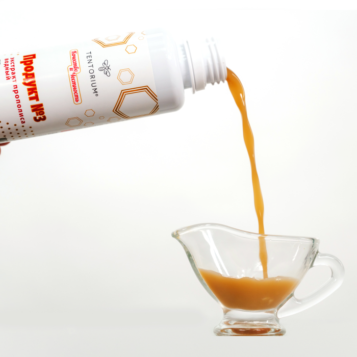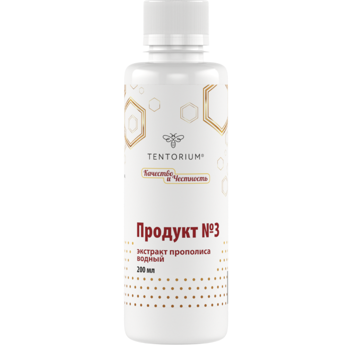 Благодаря инновационным технологиям в «Продукте № 3» объединён максимальный потенциал прополиса. Коричные кислоты водного экстракта прополиса «Эй-Пи-Ви», которые обладают мощными антитоксическими, антимикробными и антигрибковыми свойствами, получили антиоксидантную поддержку биофлавоноидов спиртового экстракта «Продукта №1». «Продукт №3» наиболее универсален к применению: спирт выводится из бальзама производственным методом, и это значит, что продукт подходит всем – детям, будущим мамам, водителям и людям, ведущим здоровый образ жизни. Высокое содержание прополиса в «Продукте №3» создаёт уникальные возможности укрепления иммунитета и омоложения организма.