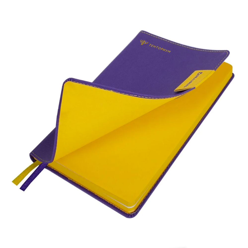 Срез и форзац ежедневника окрашены в контрастный цвет с обложкой, что придает ему особый шарм. Дополнением являются две закладки-ляссе, с помощью которых можно быстро открыть или зафиксировать ежедневник на нужной странице, а также держатель для ручки на контрасте с обложкой.