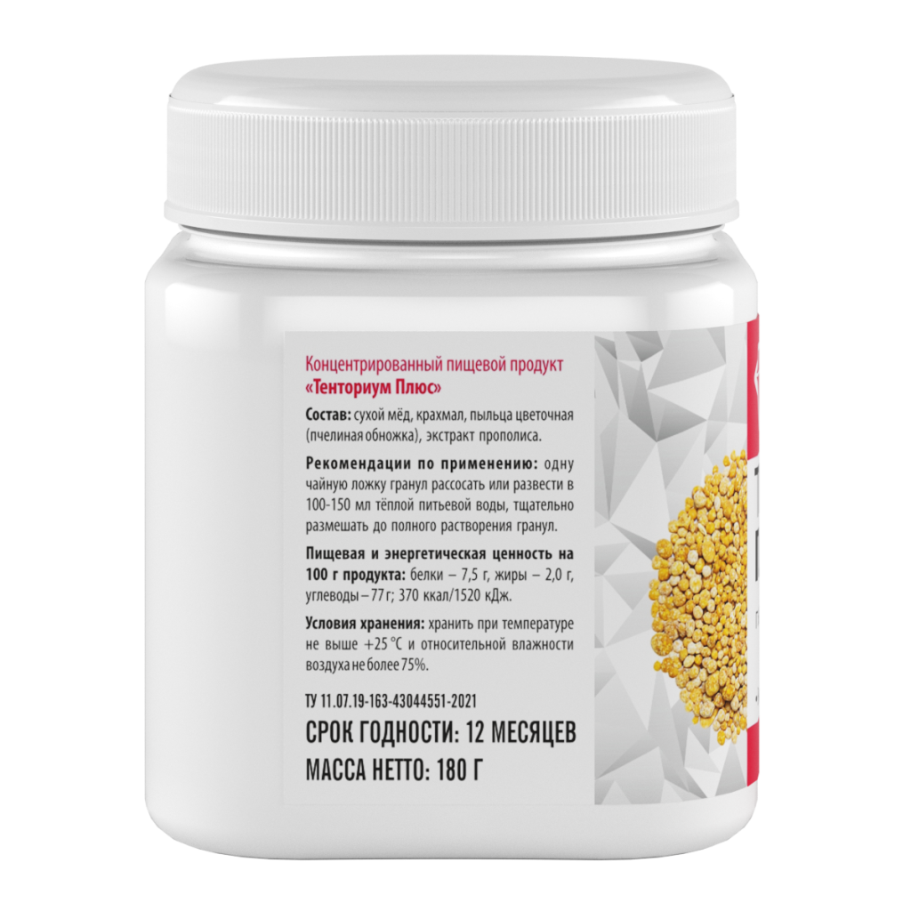 *Обращаем внимание на то, что произведена замена названия продукта на гранулы «Тенториум Плюс» в сухом мёде 180г. Состав и качество продукта остаётся неизменным.