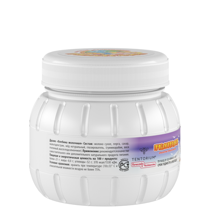 Витаминный комплекс на все случаи жизни прекрасно усваивается организмом и улучшает обменные процессы. Уникальным источником природной силы в драже является перга, которую в народе прозвали «пчелиным хлебом». Это источник витаминов, аминокислот, ферментов, а также продуктов молочно-кислого брожения. Перга обладает антисклеротическим эффектом, улучшает кровообращение и восстанавливает деятельность пищеварительной и эндокринной систем. Комплекс перги, мёда и пчелиного воска помогает укрепить иммунитет и восстановить силы. Молоко в составе продукта не только придаёт драже нежный сливочный вкус, но и восполняет в организме недостаток кальция, магния, калия, натрия и др.