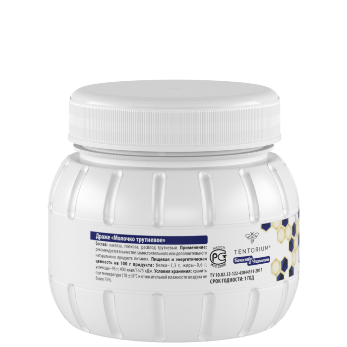 Ключевым компонентом драже является трутневый расплод (трутневое молочко), известный своими уникальными свойствами: это богатейший источник легкоусвояемых протеинов и аминокислот, содержит витамины А, Е, группы В, кальций, магний, железо, марганец, цинк, фитостерины и другие полезные вещества.