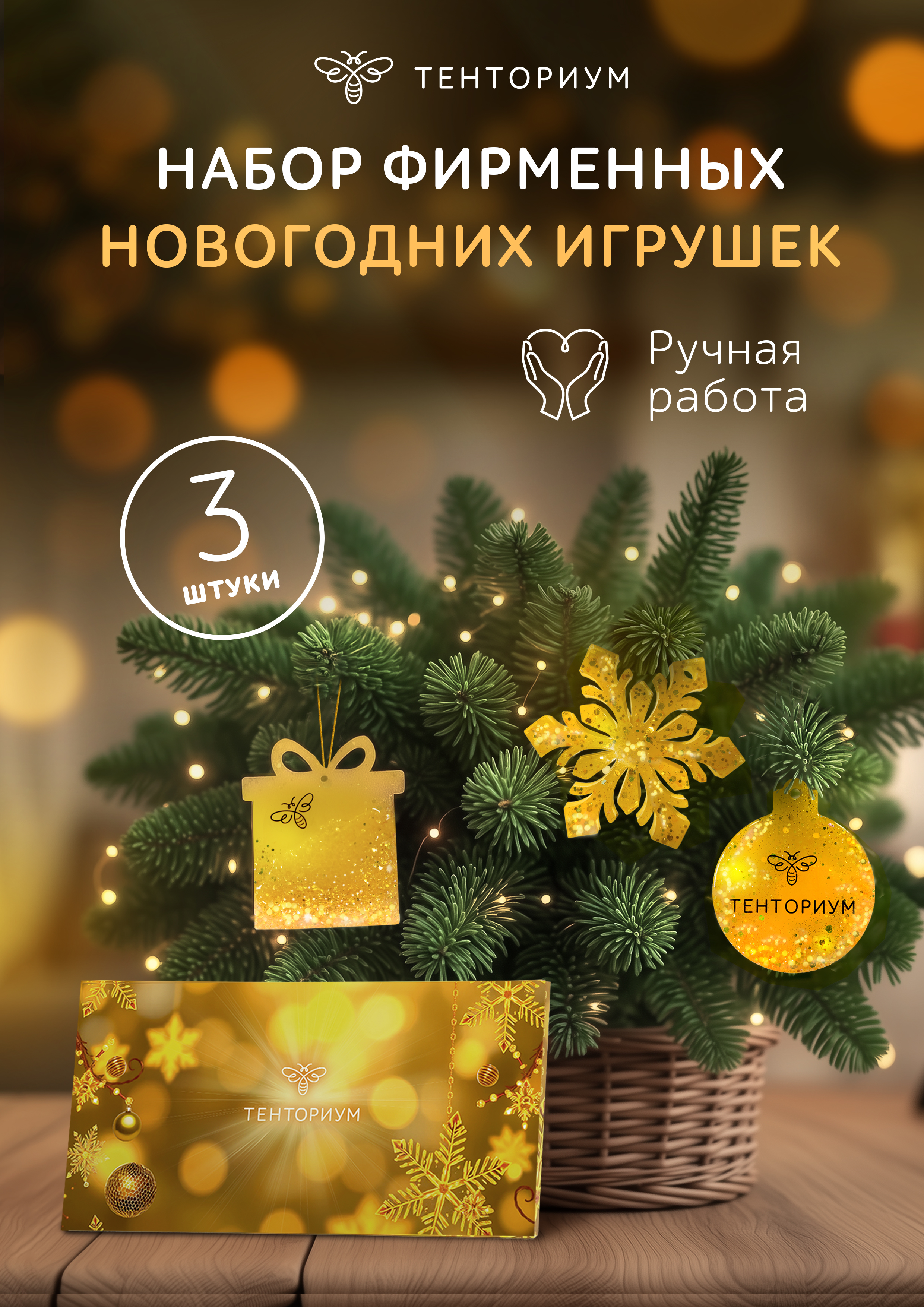 Для максимальной сохранности каждая игрушка упакована в индивидуальный прозрачный пакетик. А вместе они уложены в стильный новогодний конверт, внутри которого – тёплое пожелание от Основателя и Президента компании "Тенториум" Раиля Хисматуллина.
