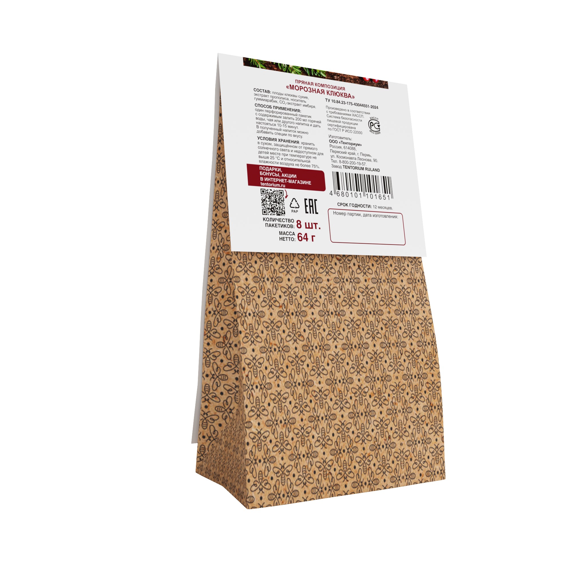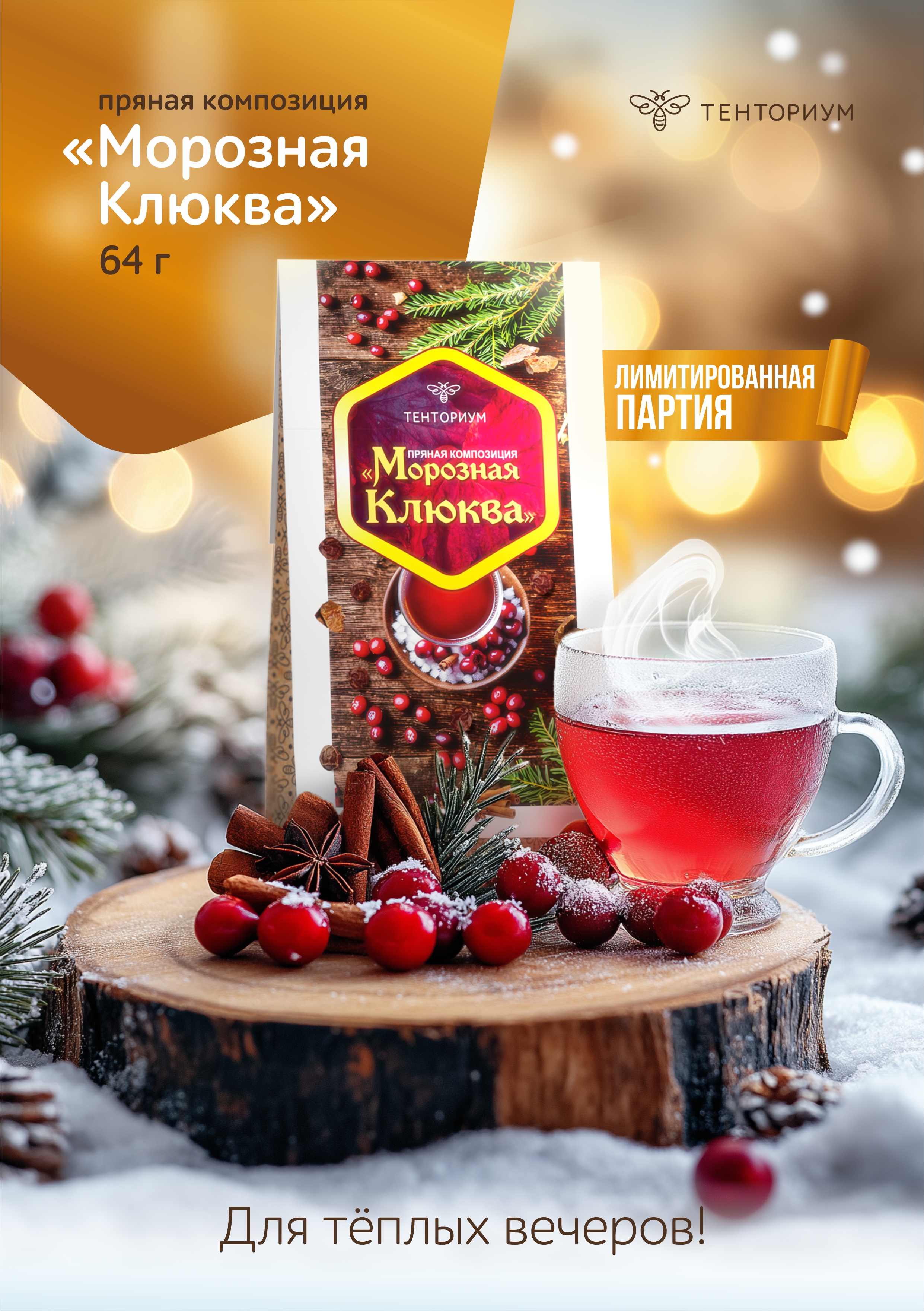 Пряная композиция “Морозная клюква” подойдёт как в качестве самостоятельного напитка, который согреет в холодную погоду и наполнит дом атмосферой приближающегося праздника, так и в качестве дополнительного ингредиента для приготовления традиционных зимних напитков.