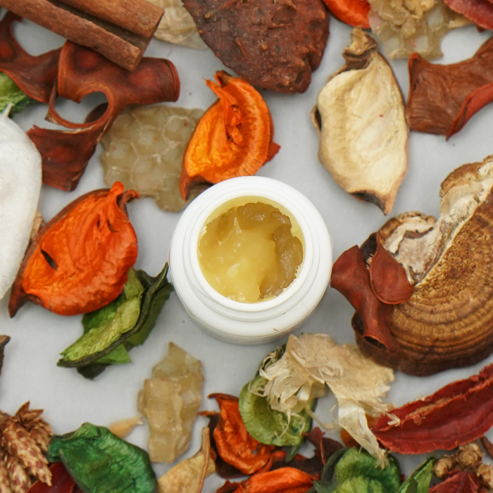 Рецептура крема включает в себя мощную комбинацию природных антисептиков: прополиса, эвкалиптового, гвоздичного и мятного масел. Прополис с давних времён известен как один из самых сильных средств в борьбе с микробами и вирусами. Эфирные масла используются для облегчения состояния при заболеваниях дыхательных путей, обладают согревающим эффектом и обезболивающим действием.