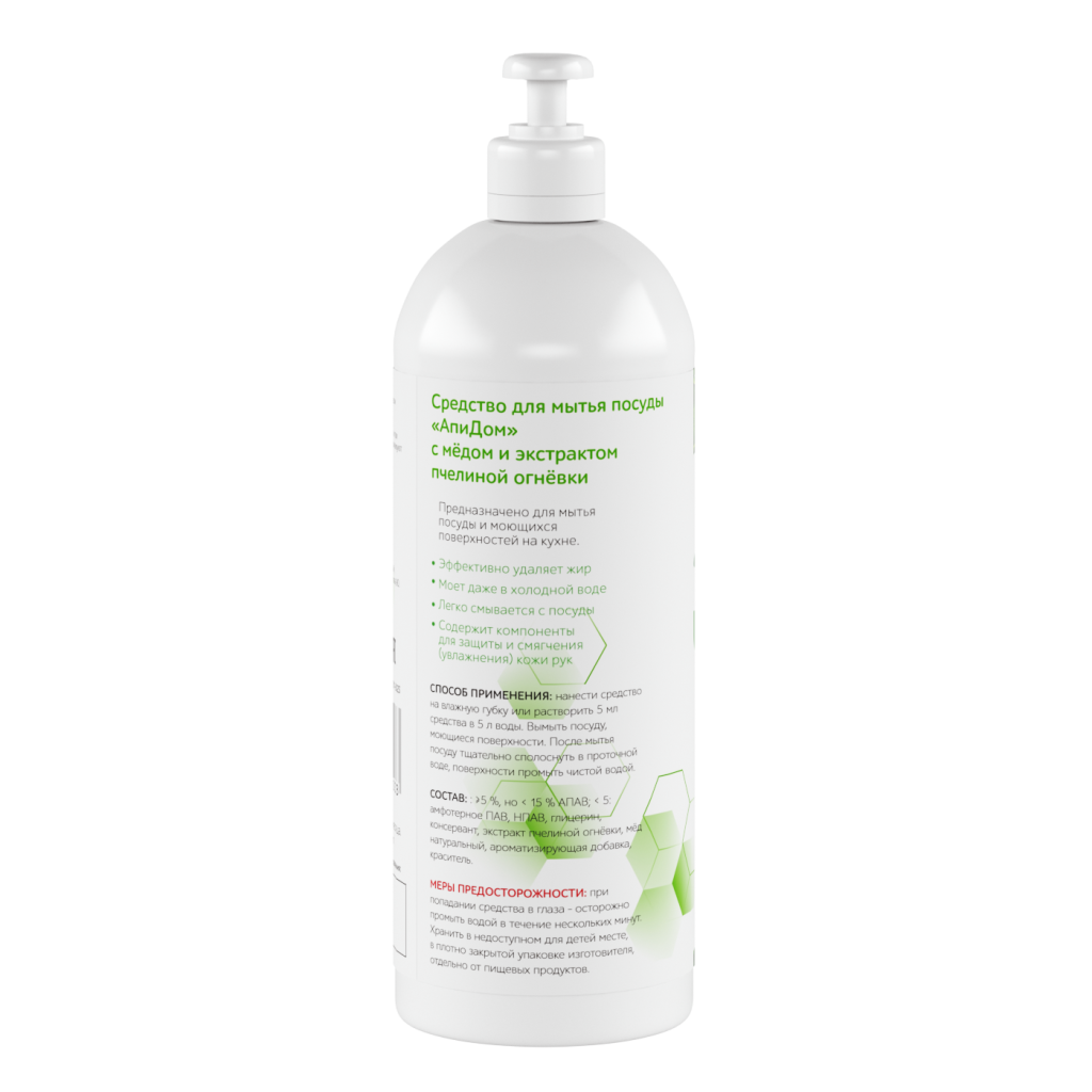 Средство для мытья посуды "АпиДом" с мёдом и экстрактом пчелиной огнёвки 500 мл