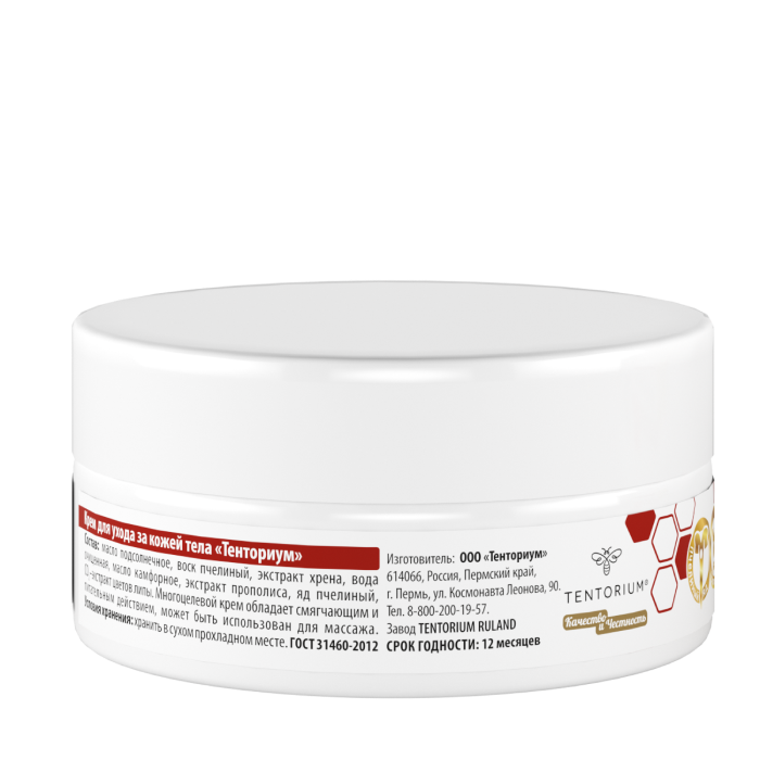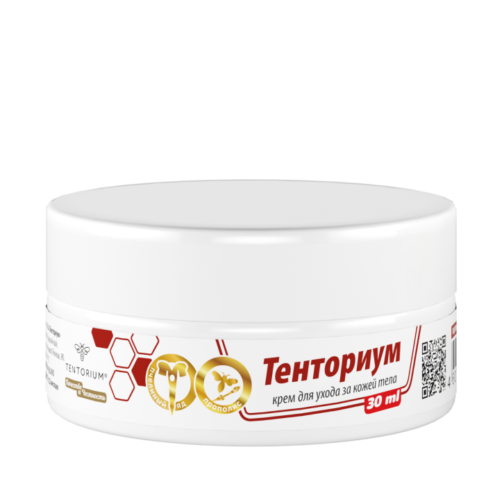 Крем смягчает и питает кожу, незаменим при лечебном, общеукрепляющем и спортивном массаже. Уникальный компонент в составе – пчелиный яд в микродозах – в сочетании с другими ценнейшими апипродуктами способствует усилению кровообращения, повышает тонус. Зарекомендовавшие себя веками апифитопродукты в составе крема многократно повышают свою эффективность в умелых руках профессионального массажиста. Массаж с кремом «Тенториум» помогает избавиться от телесной усталости, восстановить мышцы после интенсивных физических нагрузок.