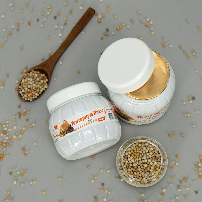 В полноценном продукте питания сбалансированно сочетаются мощные продукты пчеловодства: пыльца, прополис и воск.