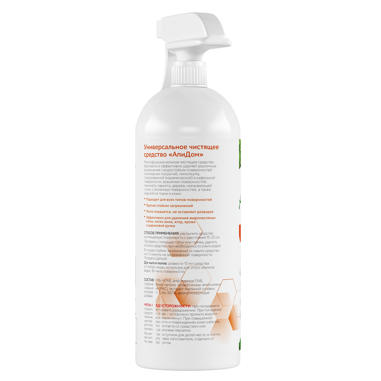 Универсальное чистящее средство "АпиДом" справляется с большинством известных загрязнений, подходит для всех поверхностей в доме, офисе, автомобиле и в местах общего пользования.