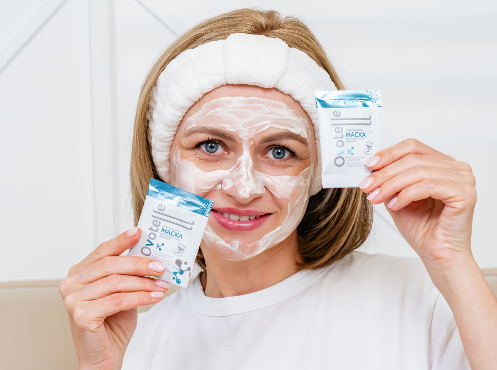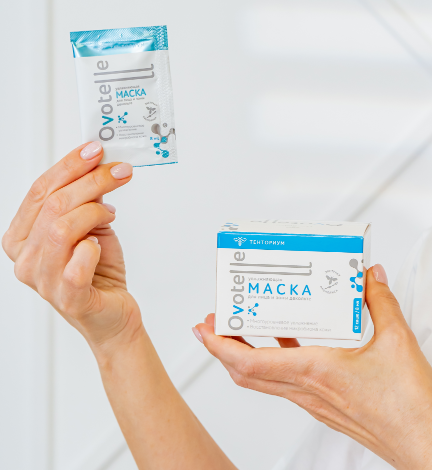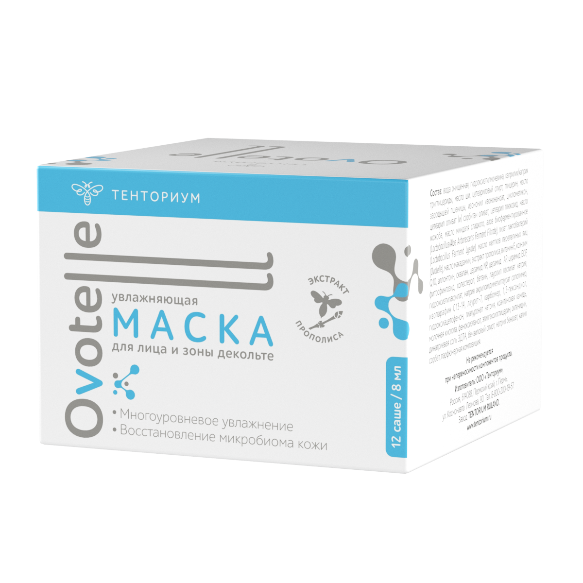 Увлажняющая маска Ovotelle для лица, шеи и зоны декольте (12 саше по 8 мл)
